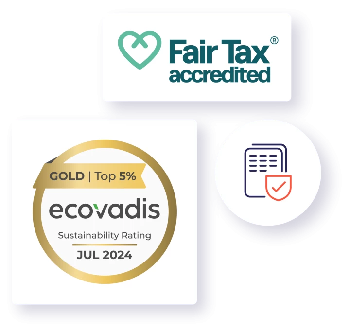 With process standards, ESG compliance and local supply built in, Unite makes it easy to comply with regulations. We’re also the first platform accredited with the Fair Tax Mark and are Gold-rated by EcoVadis. Our actionable CO2 data let you identify, analyse, and report on your carbon footprint.